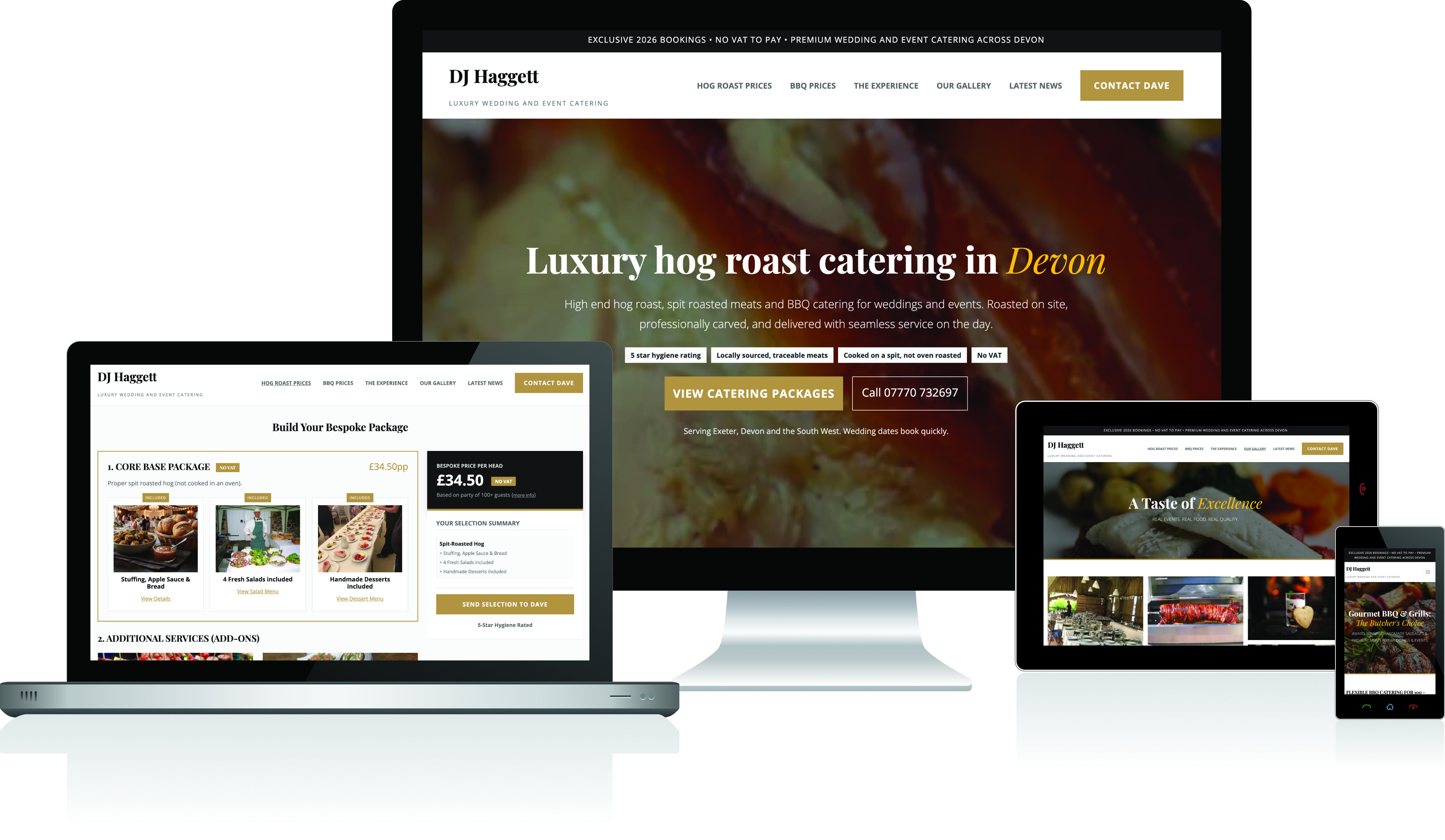 DJ Haggett has stayed at the top of Devon's premium catering market for over 15 years through ongoing website development, SEO, and digital strategy designed to protect visibility and drive consistent bookings.